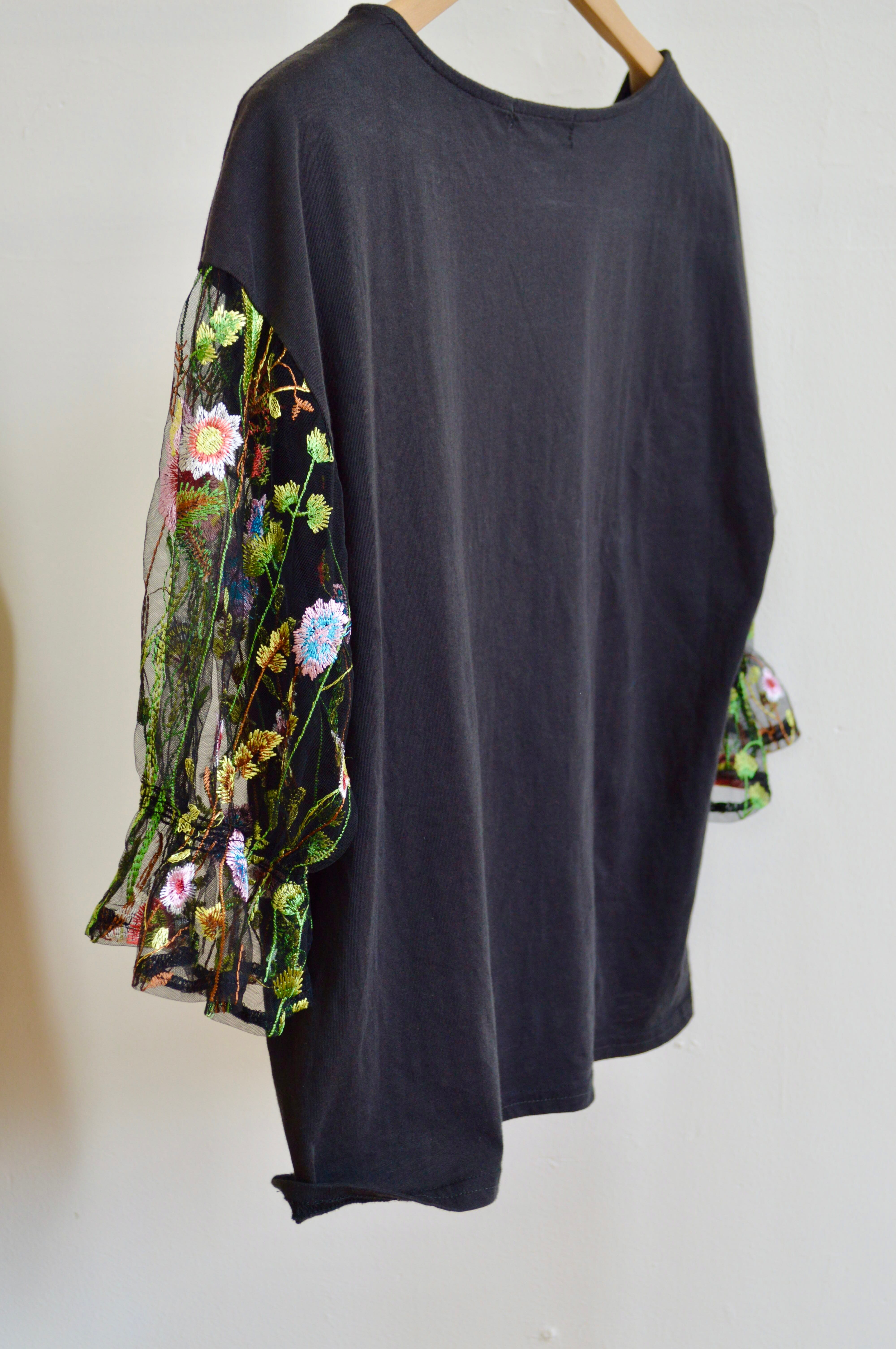 カットソー生地とチュールな生地の切り返しがポイント。腕の太さが気にならないです!