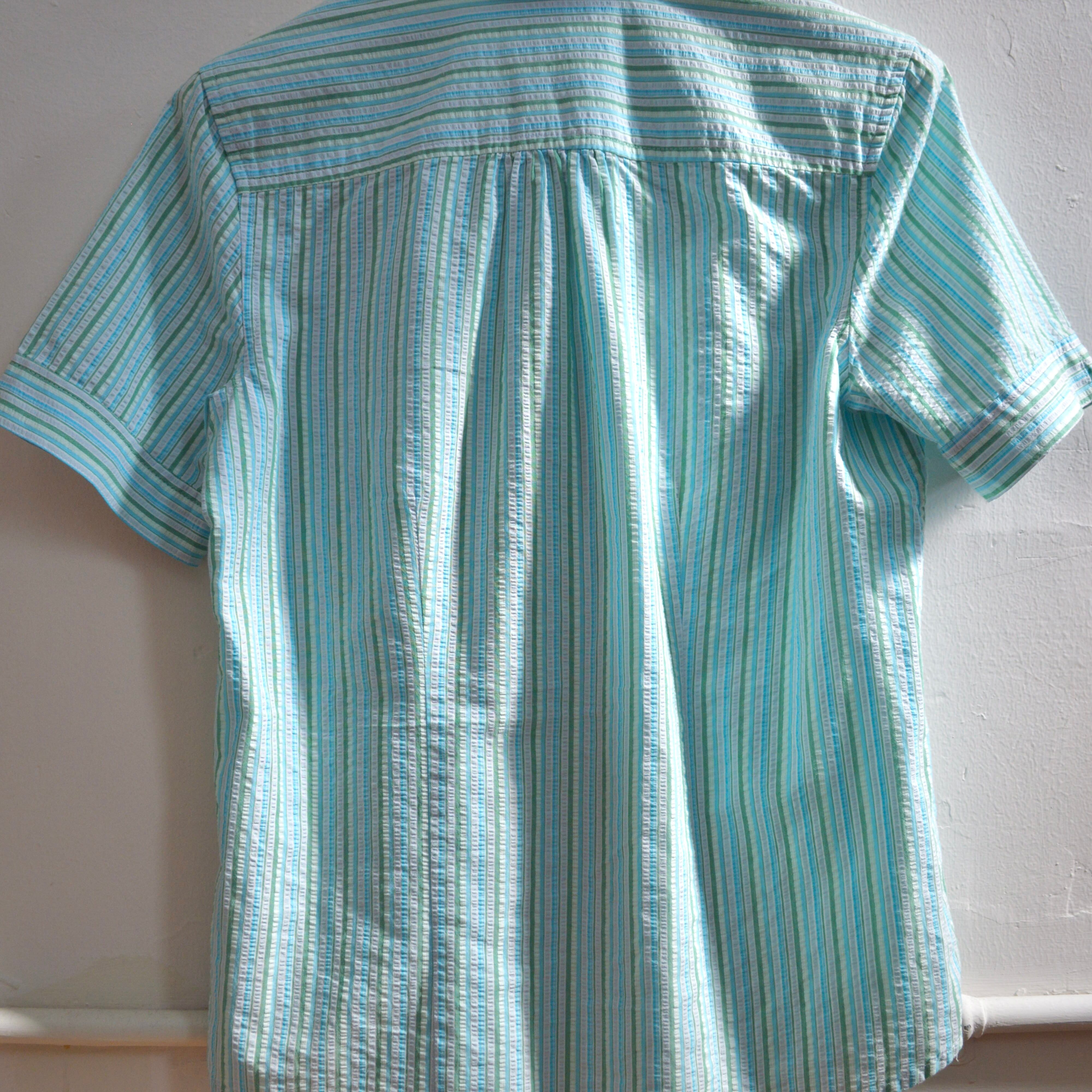 パジャマの生地にも使われる、シアーサッカーという織りのシャツ.